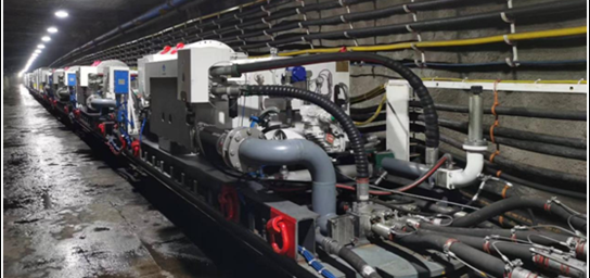 “煤礦高效能大流量遠(yuǎn)距離智能配送水基動(dòng)力系統(tǒng)成套裝備”項(xiàng)目開發(fā)了多泵站并聯(lián)集中式智能變頻控制系統(tǒng)和大流量蓄能穩(wěn)壓裝備及回液中繼系統(tǒng);發(fā)明了井下大流量乳化液泵沖擊脈沖預(yù)測(cè)方法、乳化液智能配比及矯正系統(tǒng);提出了用液實(shí)時(shí)輕量算法+用液超前預(yù)測(cè)模型的符合控制方案,實(shí)現(xiàn)了3500m以上的超遠(yuǎn)距離工作面穩(wěn)壓穩(wěn)流智能配送。