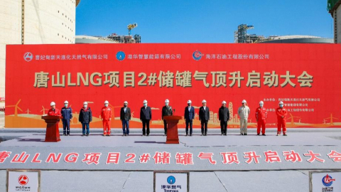 曹妃甸區(qū)政府黨組成員、副區(qū)長王劍對與會(huì)嘉賓表示歡迎并對項(xiàng)目一線工作者致以慰問。他指出,唐山LNG項(xiàng)目作為國家能源發(fā)展規(guī)劃中的重要一環(huán),對優(yōu)化京津冀地區(qū)能源結(jié)構(gòu)、滿足區(qū)域天然氣供需平衡要求、助力打贏“藍(lán)天保衛(wèi)戰(zhàn)”具有深遠(yuǎn)意義,將為河北省乃至京津冀地區(qū)帶來顯著的經(jīng)濟(jì)和社會(huì)效益。“本次2#儲罐氣頂升是儲罐建設(shè)過程中的關(guān)鍵工序之一,是唐山LNG項(xiàng)目建設(shè)中的標(biāo)志性事件。曹妃甸區(qū)委區(qū)政府將牢固樹立服務(wù)意識,打造優(yōu)質(zhì)營商環(huán)境,全力支持項(xiàng)目后期建設(shè)及運(yùn)營,預(yù)祝項(xiàng)目早日建成投產(chǎn)。”