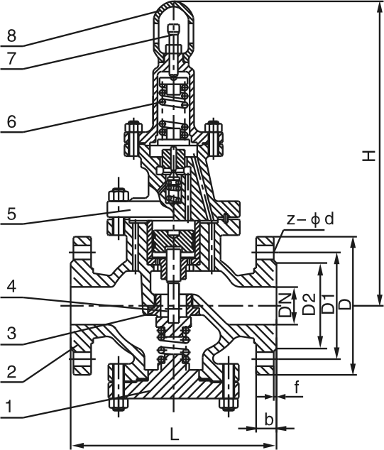 Y43H蒸汽減壓閥通過(guò)調(diào)節(jié)彈簧壓力設(shè)定出口壓力、利用膜片傳感出口壓力變化,通過(guò)導(dǎo)閥啟閉驅(qū)動(dòng)活塞調(diào)節(jié)主閥節(jié)流部位過(guò)流面積的大小,實(shí)現(xiàn)減壓穩(wěn)壓功能,主產(chǎn)品主要用于蒸汽管路,起減壓穩(wěn)壓作用。