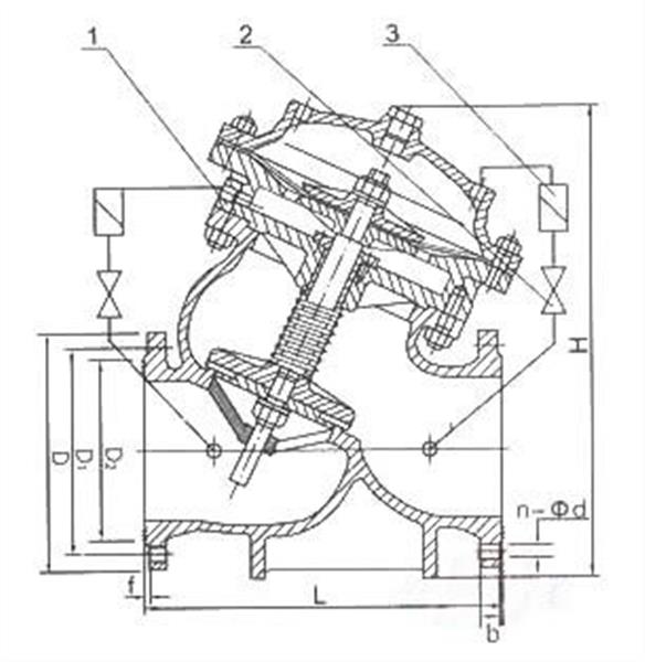 JD745X多功能水泵控制閥的接管系統(tǒng)采用調(diào)節(jié)閥控制,通過設(shè)定調(diào)節(jié)閥的開度,可方便實(shí)現(xiàn)需要的各項(xiàng)控制參數(shù),如主閥的開啟速度、緩閉速度等等。